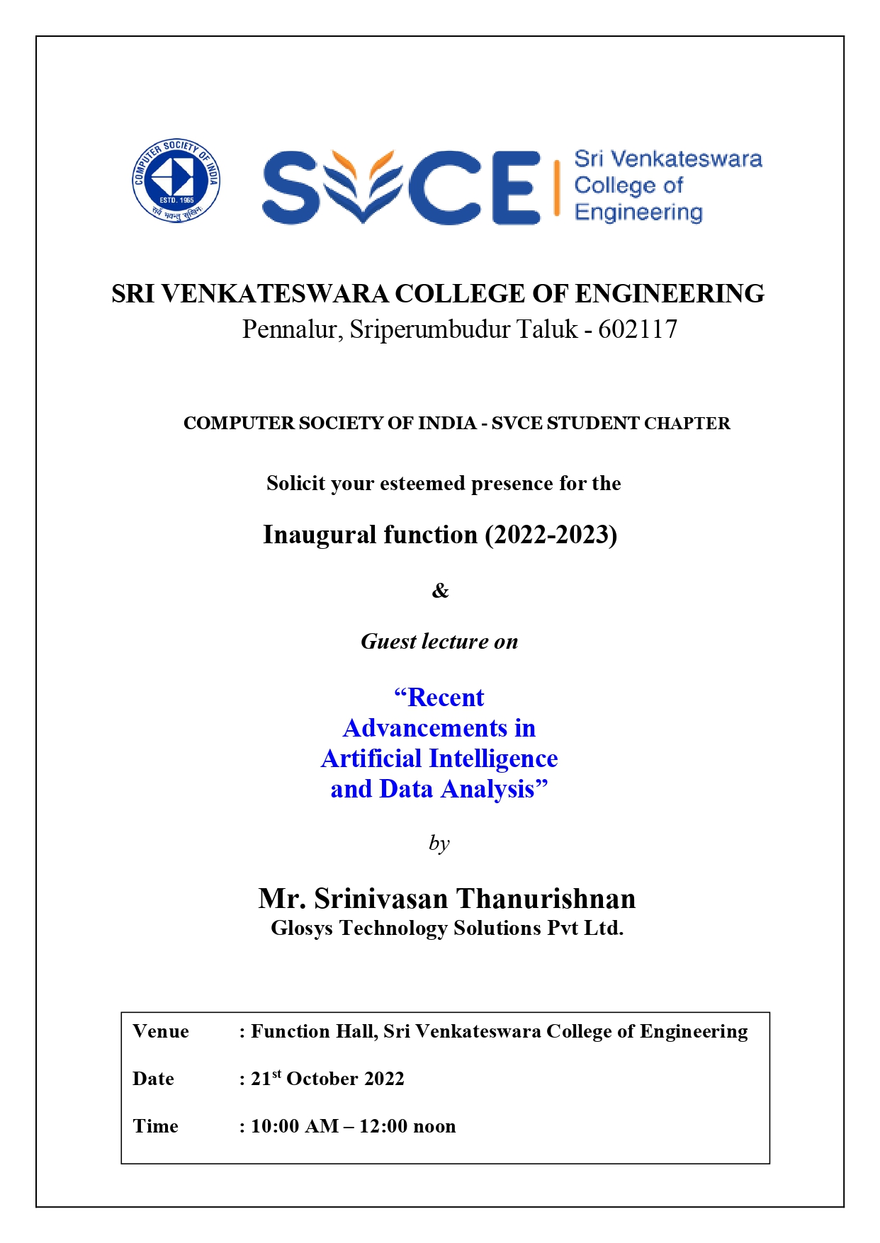 Computer Society of India - SVCE Student Chpater and Departments of CSE,IT and ECE,