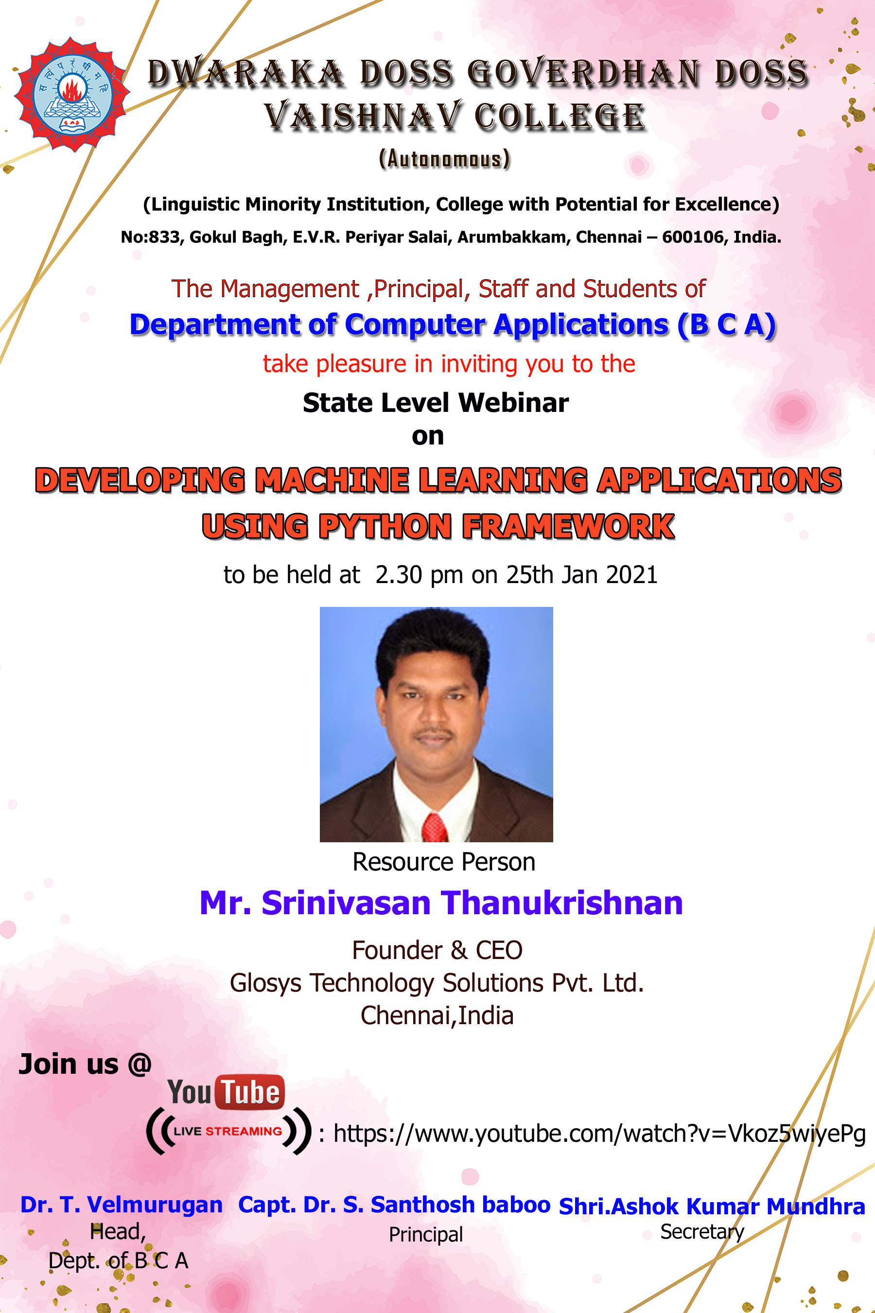 State Level Webinar on "Developing Machine Learning Applications using Python Framework"